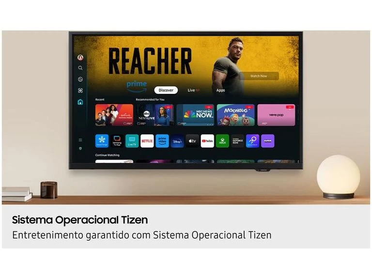 Sistema Smart: Plataforma Tizen com Bixby e compatibilidade com Alexa, impulsionada por processador Hyper Real
